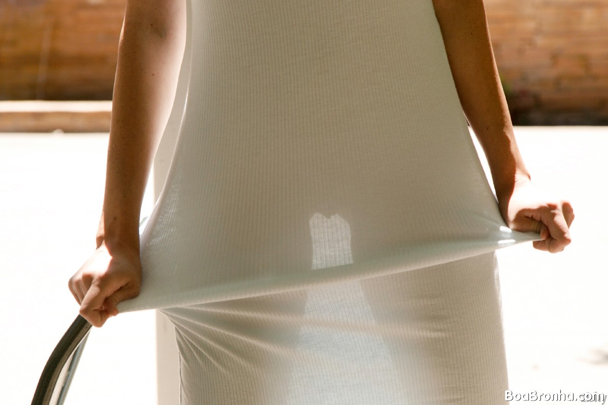 Sabrina Lynn de vestido transparente sem nada por baixo
