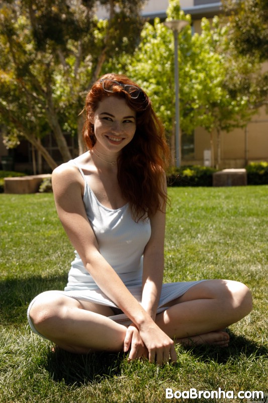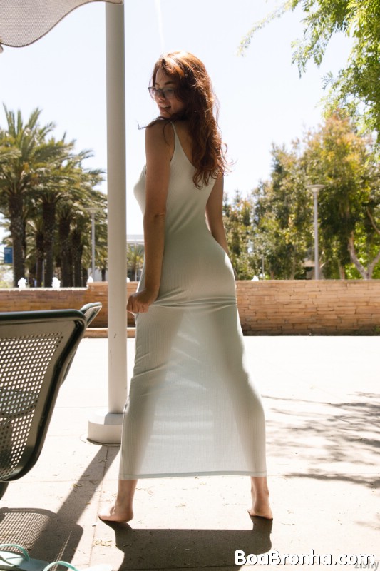 Fotos da linda ninfeta ruiva peituda Sabrina Lynn sensualizando na rua. Usando um vestido curto e transparente, a gata arrasa em fotos sensuais sem calcinha e sutiã por baixo dele! Um verdadeiro tesão de ensaio de fotos provocativas!